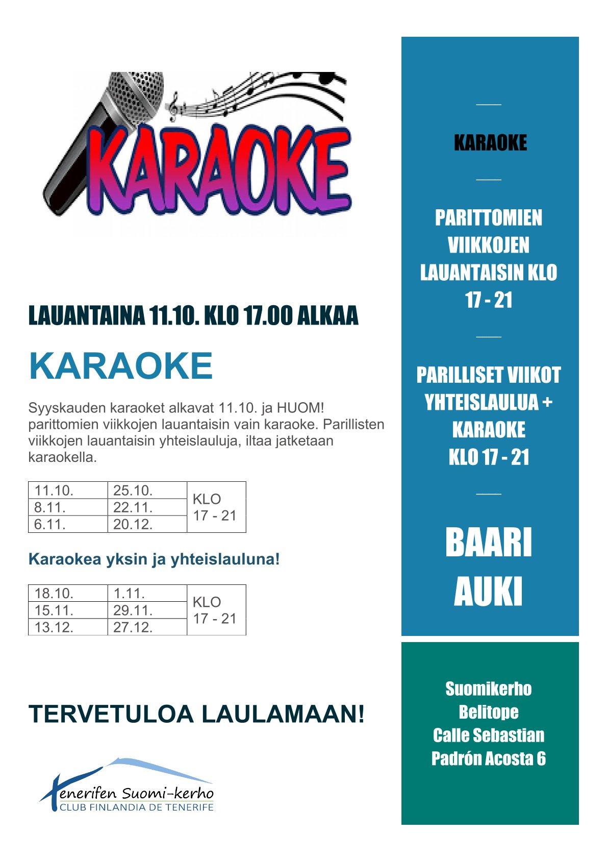 Syyskauden karaoke alkaa lauantaina 11.10. klo 17.00