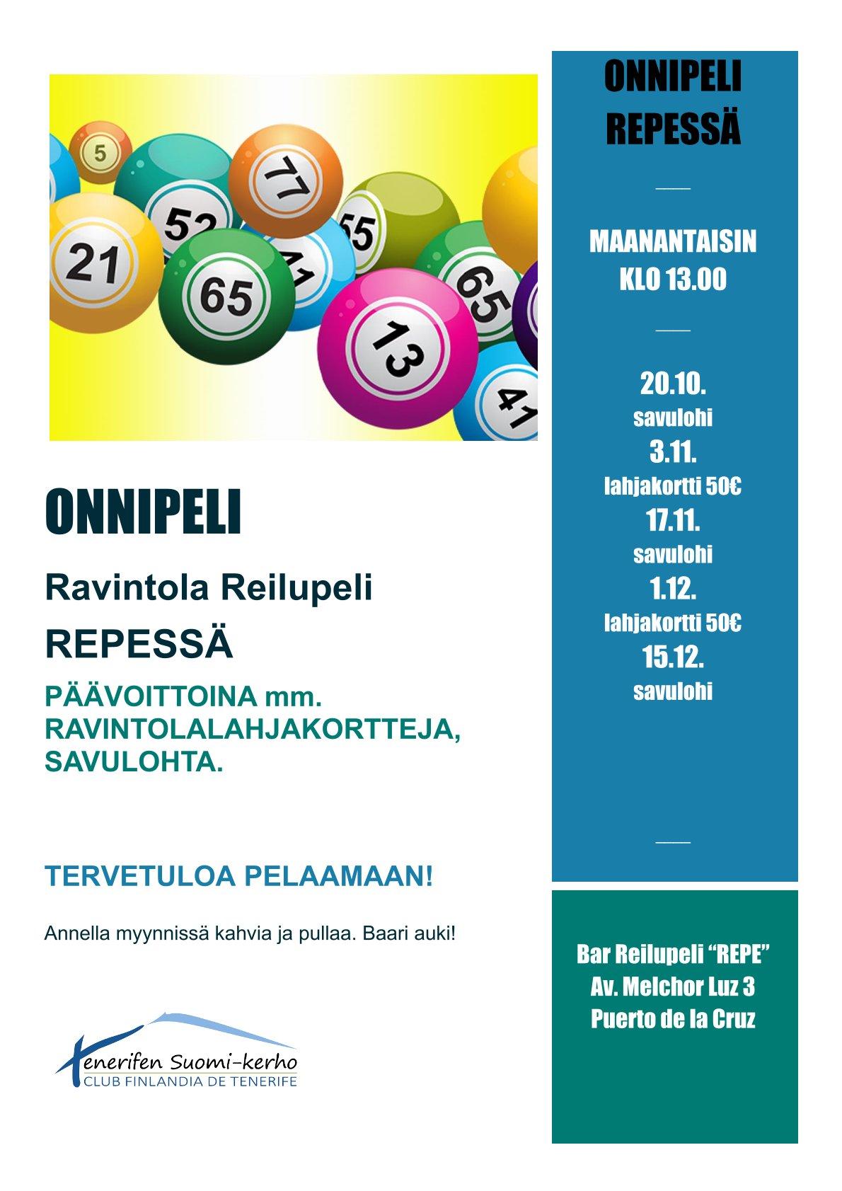 pelataan koko kauden REPEssä, joka maanantai 20.10. alkaen klo 13.00. Palkintoina savulohta tai 50 euron ravintolalahjakortti, ja 15.12. tietenkin JOULUKINKKU!