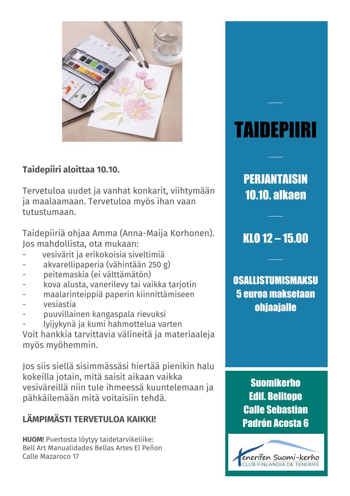 TAIDEPIIRI aloittaa perjantaina 10.10. klo 12.00