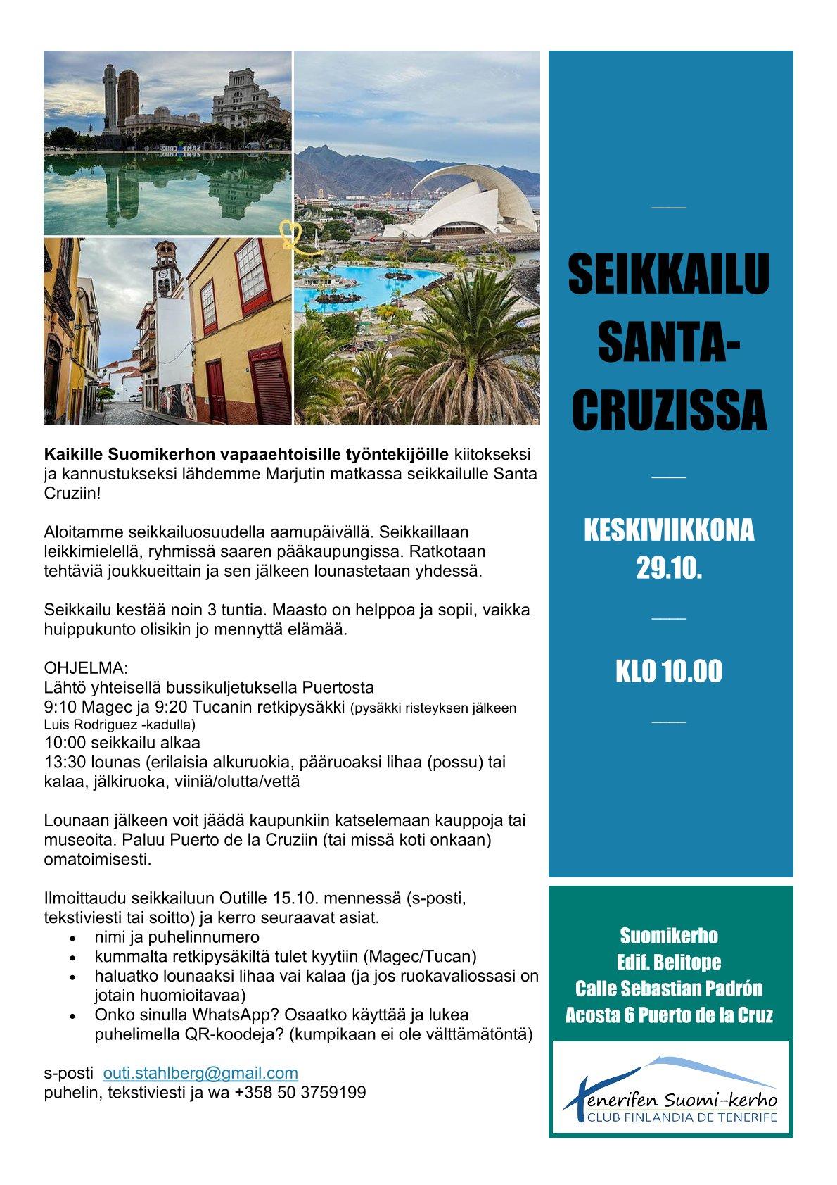 Kaikille Suomikerhon vapaaehtoisille työntekijöille kiitokseksi ja kannustukseksi lähdemme Marjutin matkassa seikkailulle Santa Cruziin! Aloitamme seikkailuosuudella aamupäivällä. Seikkaillaan…