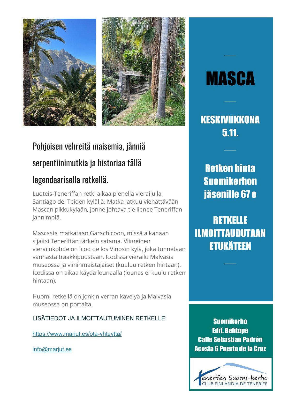 Pohjoisen vehreitä maisemia, jänniä serpentiinimutkia ja historiaa tällä legendaarisella retkellä. Paljon toivottu retki ihanaan Mascan kylän suomenkielellä opastettuna. Keskiviikkona 5.11. Marjut…