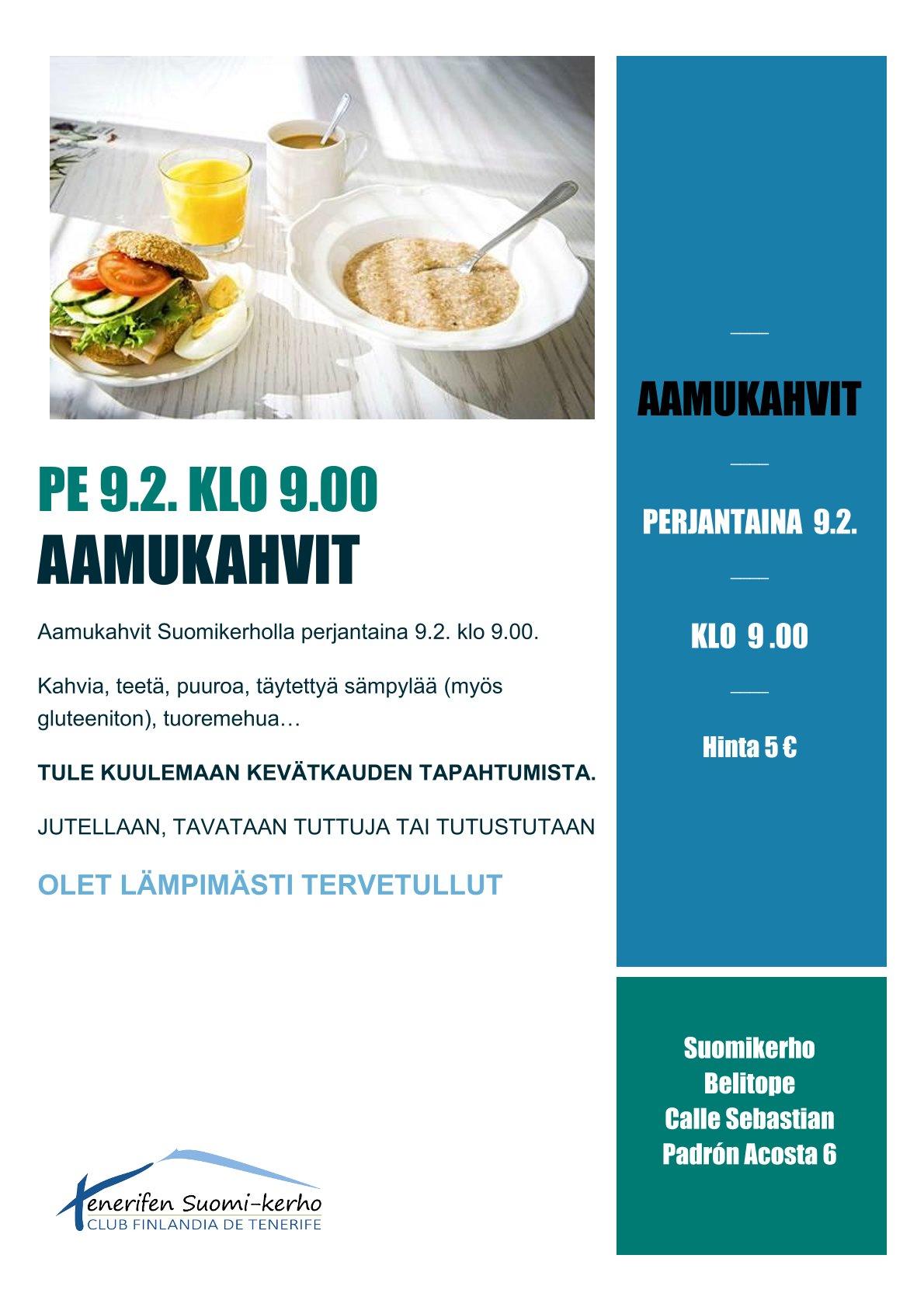 Aamukahvit Suomikerholla perjantaina 9.2. klo 9.00.