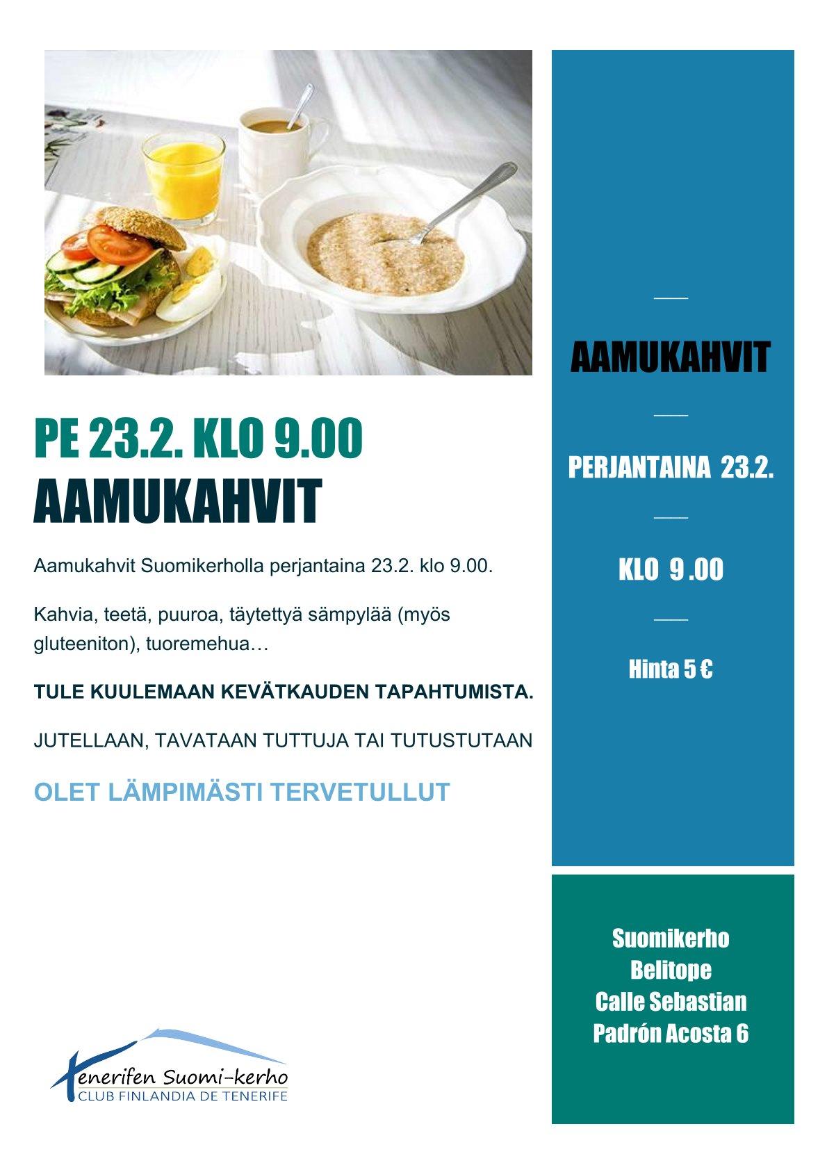 Aamukahvit Suomikerholla perjantaina 23.2. klo 9.00.