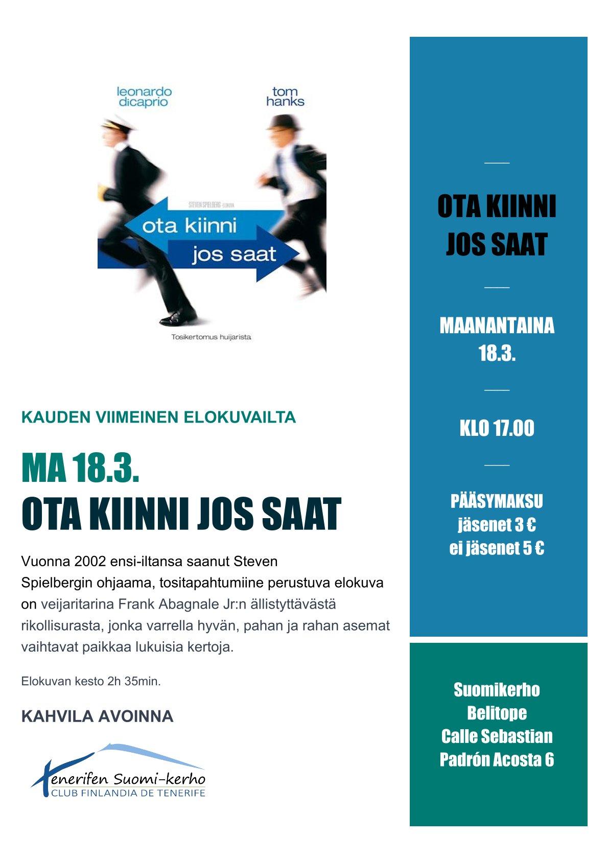 Vuonna 2002 ensi-iltansa saanut Steven Spielbergin ohjaama, tositapahtumiin perustuva elokuva on veijaritarina Frank Abagnale Jr:n ällistyttävästä rikollisurasta, jonka varrella hyvän, pahan ja rahan asemat vaihtavat paikkaa lukuisia kertoja.
