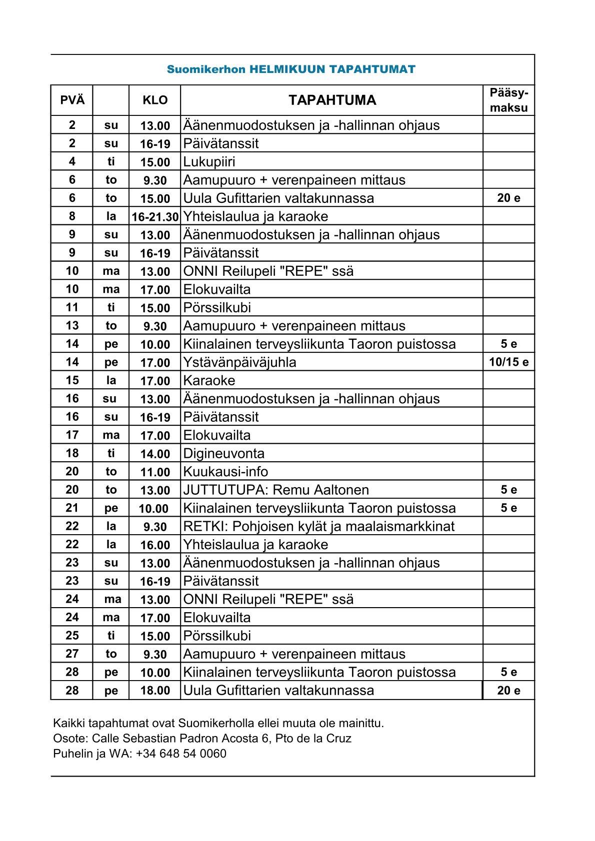 HELMIKUUN TAPAHTUMAKALENTERI
