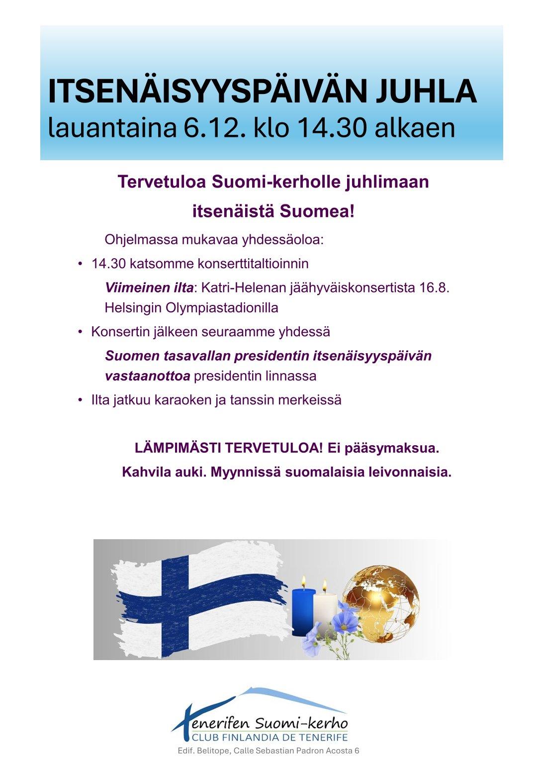 Tervetuloa Suomi-kerholle juhlimaan itsenäistä Suomea!