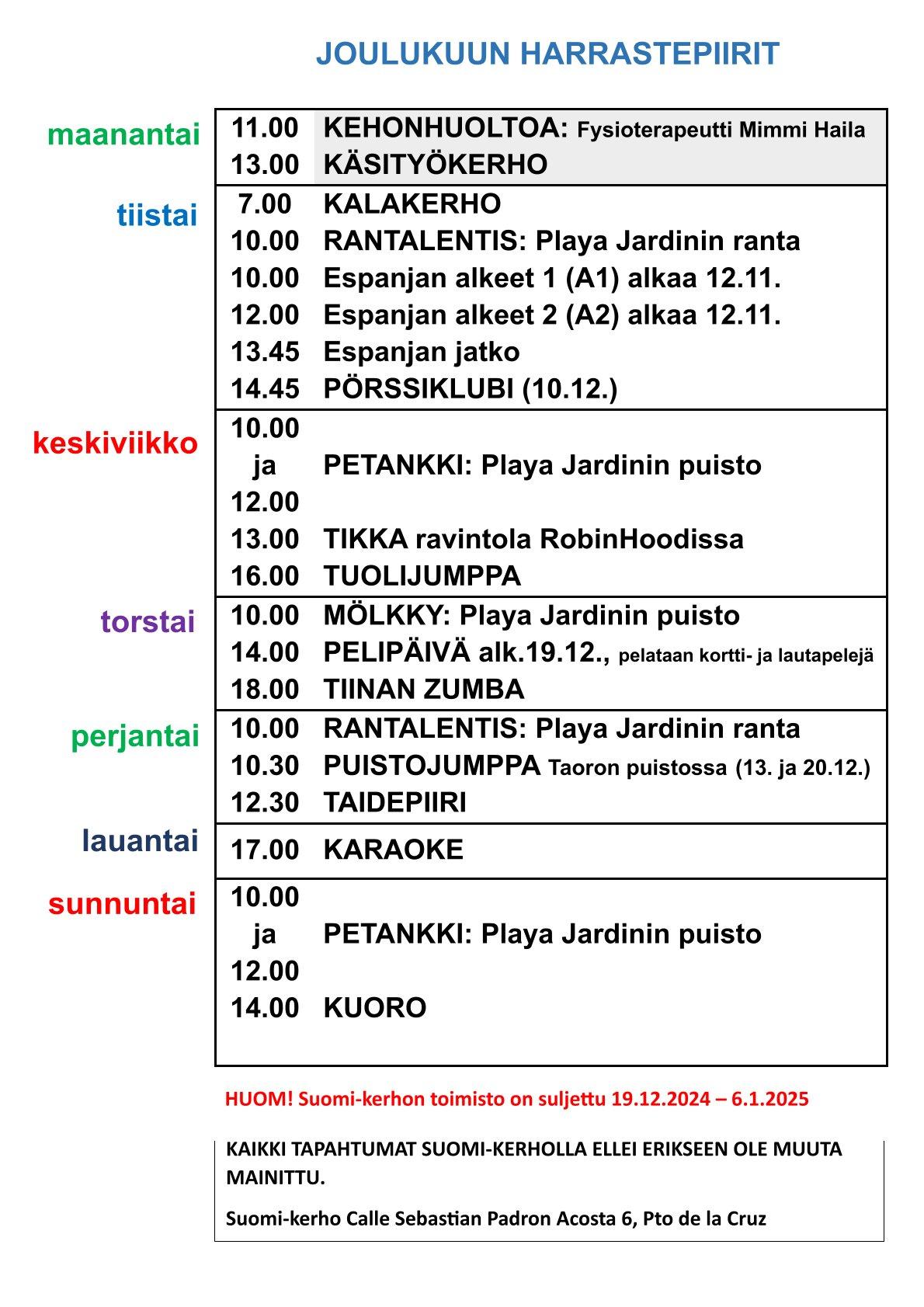 Joulukuun harrastepiirit