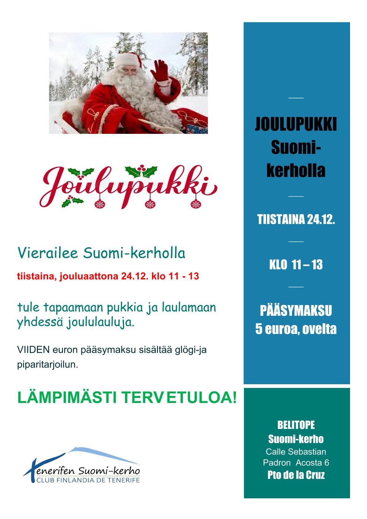 Vierailee Suomi-kerholla tiistaina, jouluaattona 24.12. klo 11 - 13