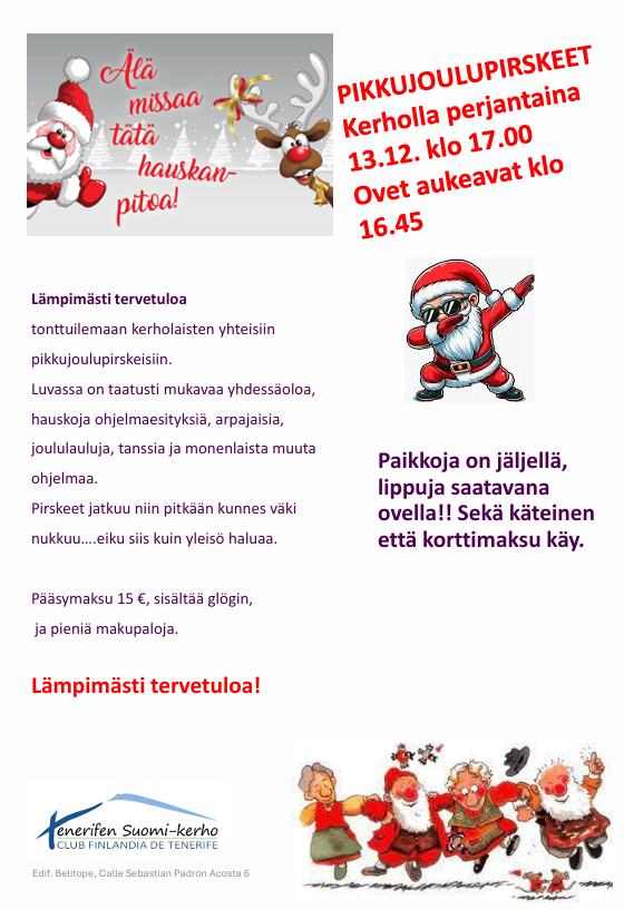 tonttuilemaan kerholaisten yhteisiin pikkujoulupirskeisiin.
