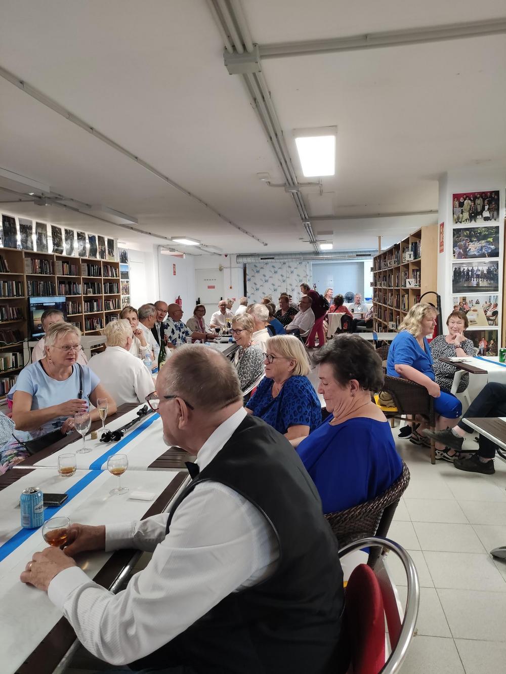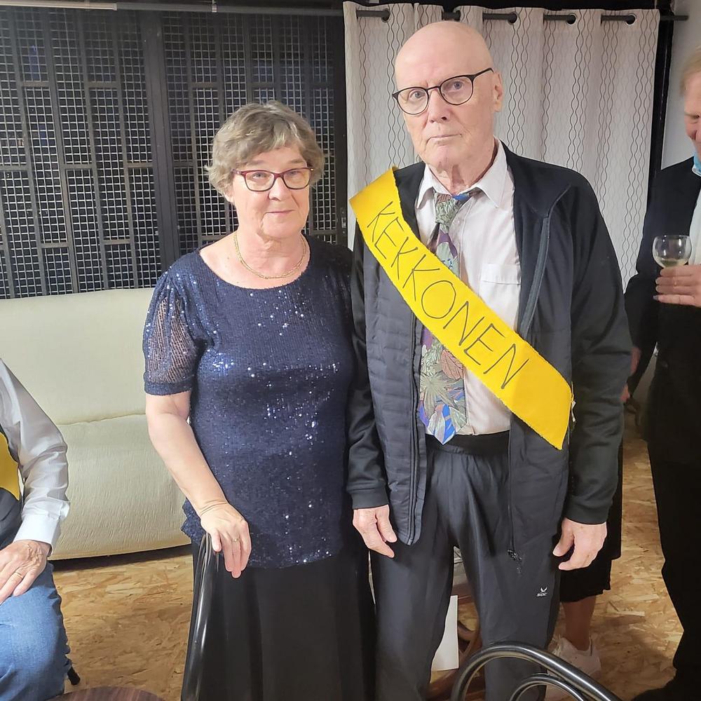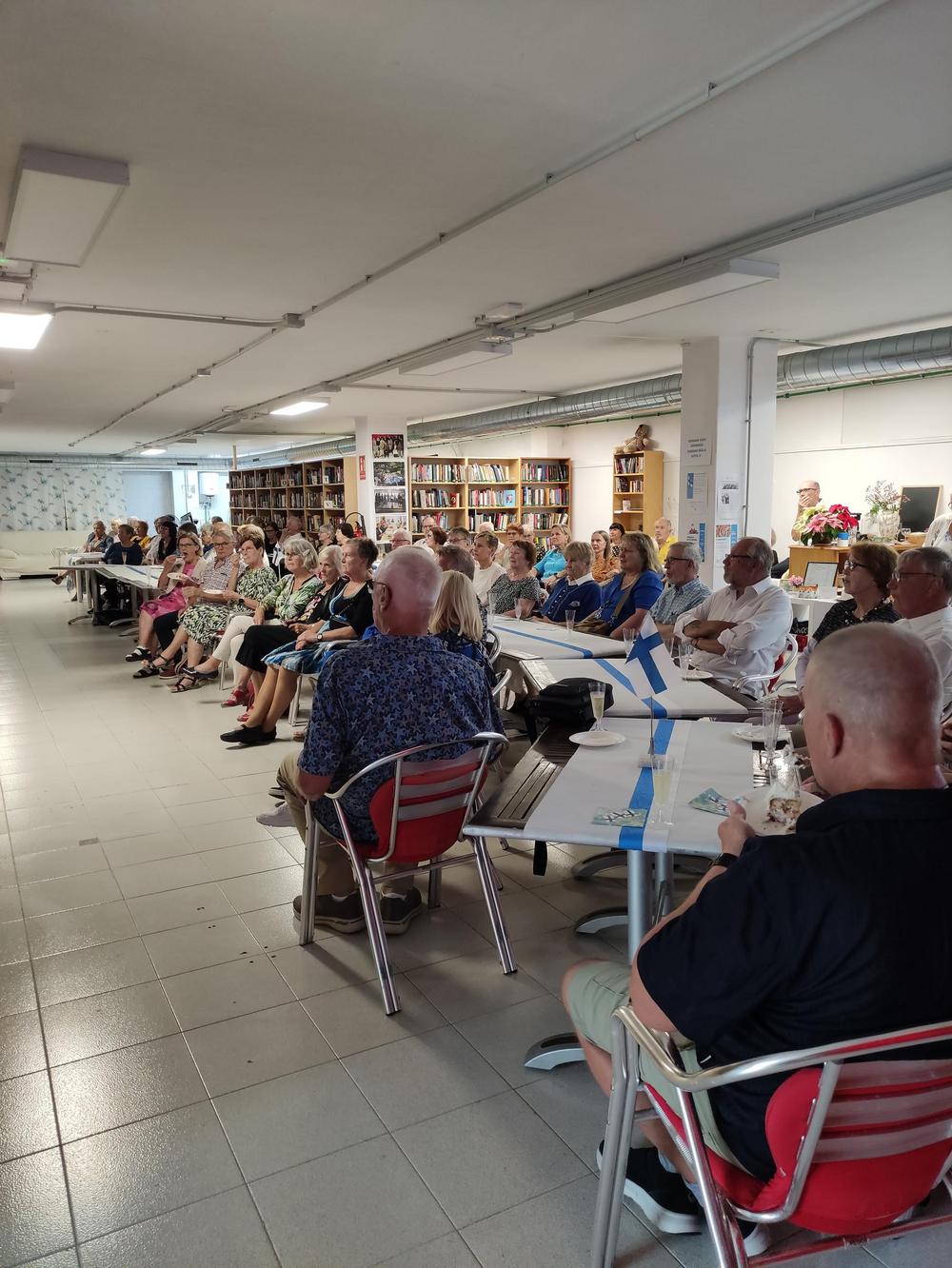 Juhlapäivä jatkui kerhon omissa tiloissa Belitopessa. Aluksi seurattiin varsinaista Linnanjuhlien televisiointia, jokainen tuoli oli käytössä ja seisomaankin osa joutui.
