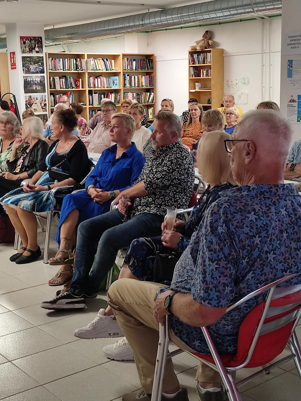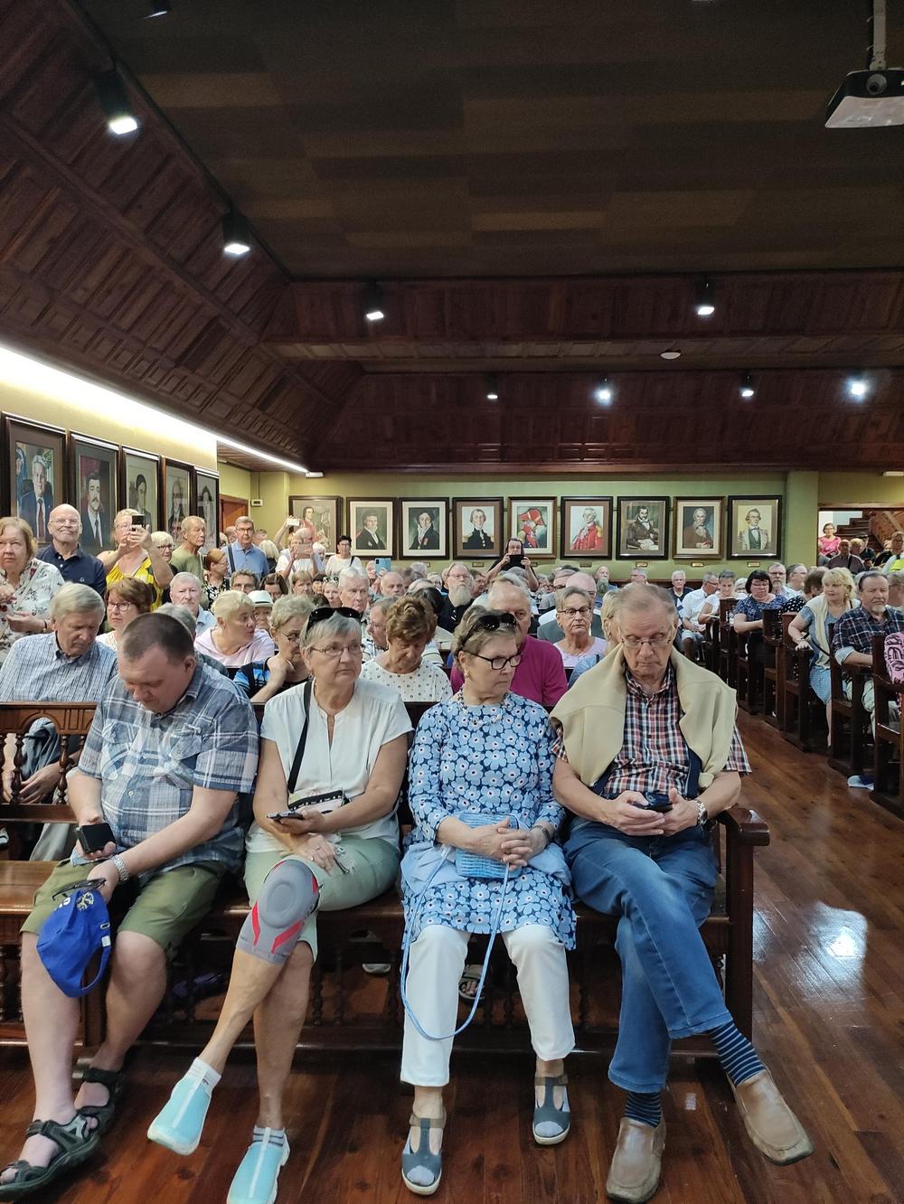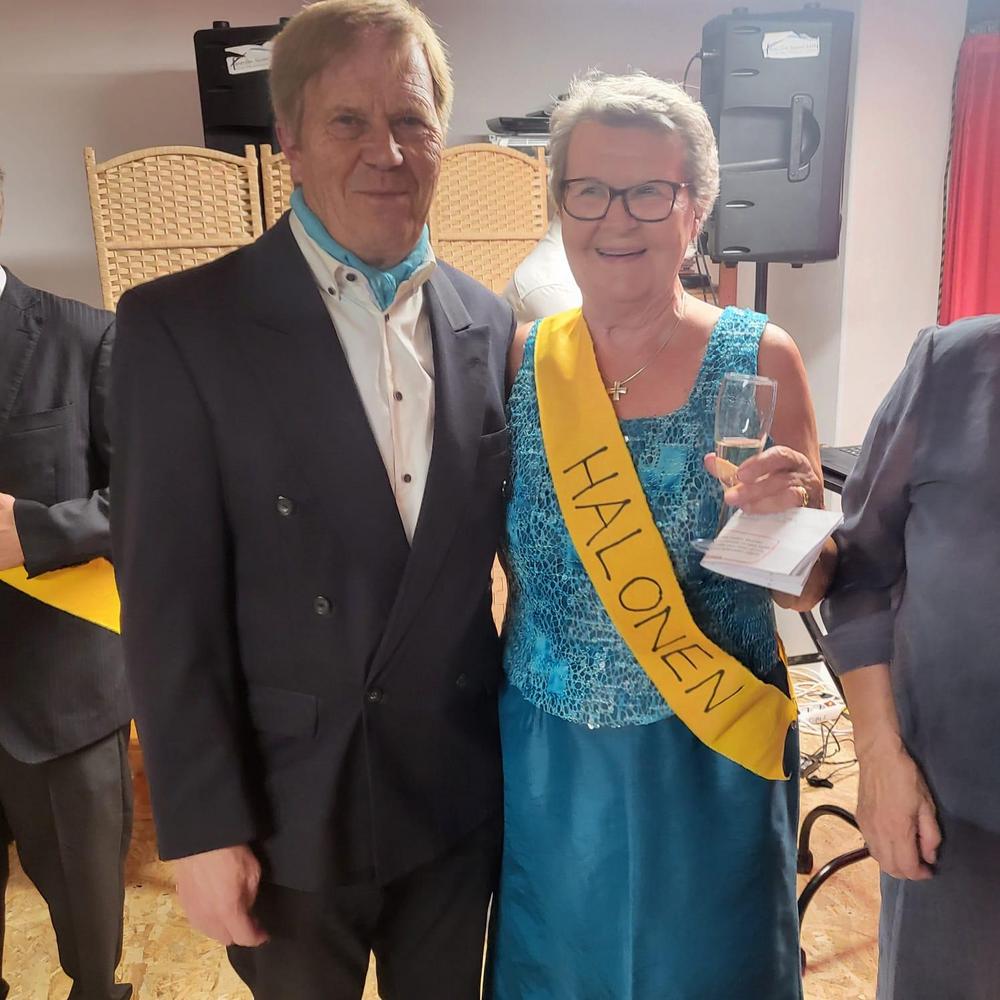 Juhlapäivä jatkui kerhon omissa tiloissa Belitopessa. Aluksi seurattiin varsinaista Linnanjuhlien televisiointia, jokainen tuoli oli käytössä ja seisomaankin osa joutui.