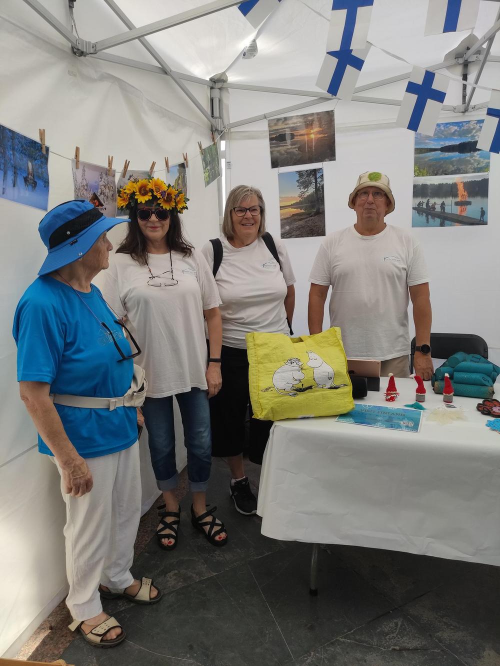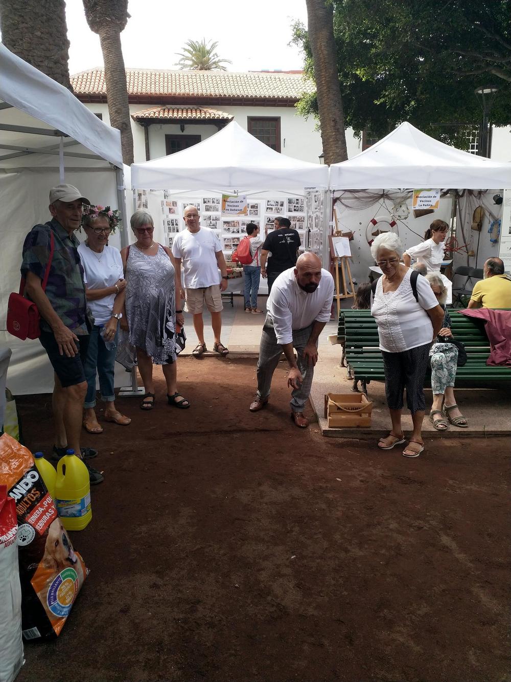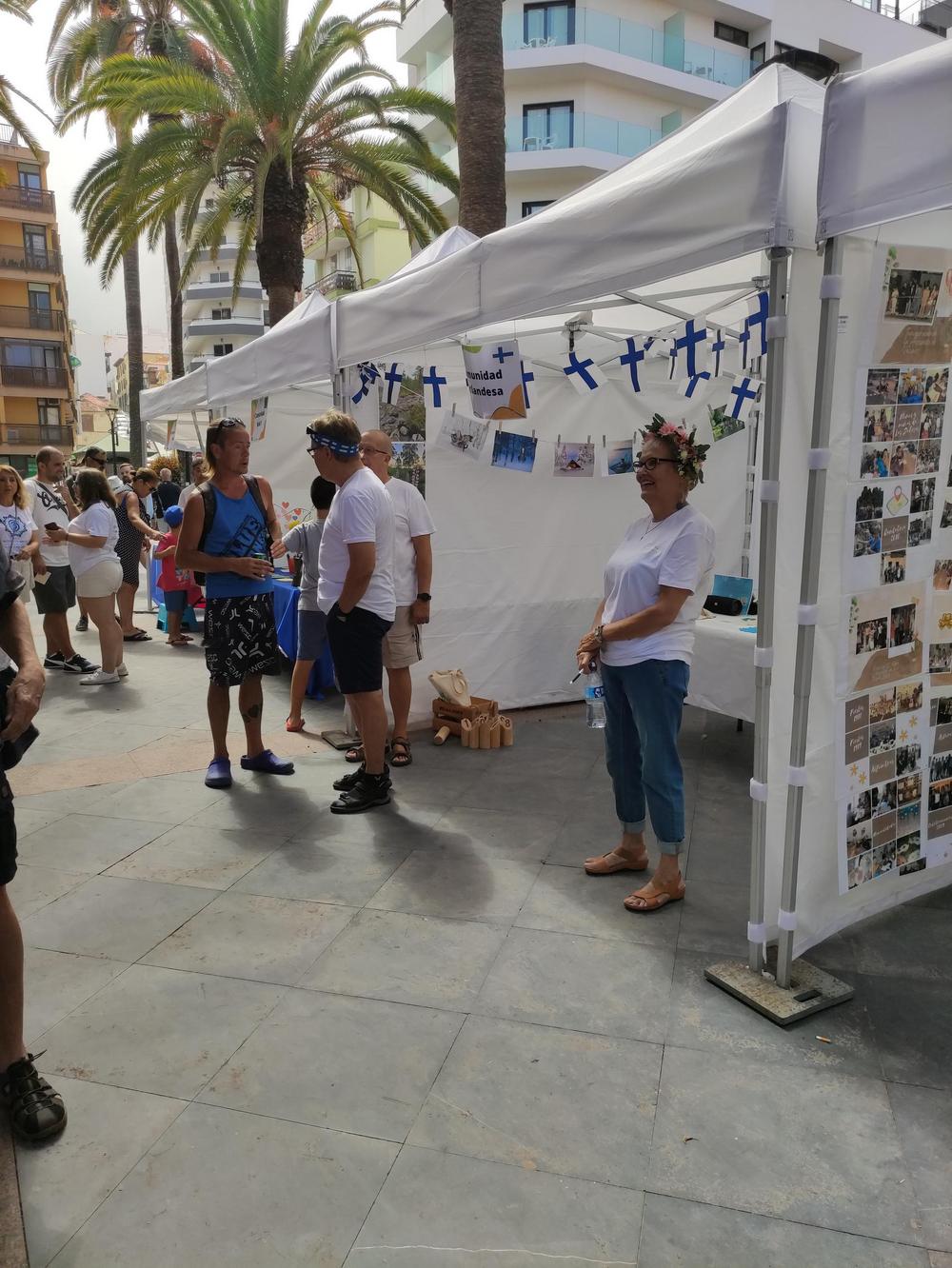 Naapuruuspäivää vietettiin neljättä kertaa, kerho oli mukana toista kertaa. Tällä kertaa tapahtumapaikkana oli Plaza de Charcon, joka olikin lämpimänä päivänä suht sopiva. Ohjelma sisälsi Zumbamestarikurssin, paneelin aiheesta naapuruus, kaikenlaisia musiikkiesityksiä ja tarinankerrontaa. Kerhon osastolla oli valokuvia aiheesta juhannus, meillä oli esillä Suomi-aiheisia muitakin kuvia. Avantouinti, porot ja joulupukki herättävät aina mielenkiintoa. Osastollamme soi haitarimusiikkia; polkkaa, jenkkaa ja valssia. Meillä oli myös tanssijoita ja muutaman mukavan valssin lauloivat Velleri ja Risto Laitinen. Risto vei valssiin Ulla Santavuoren. Näkyvyyttä saatiin ainakin mölkkyä opettamalla, kaupungin pormestari Marco Gonzalez oppi nopeasti oikean heittotavan.