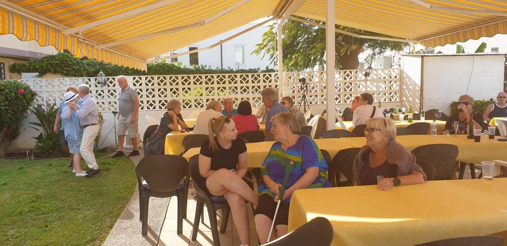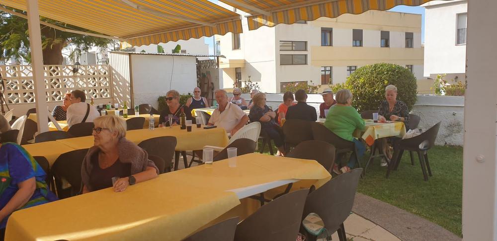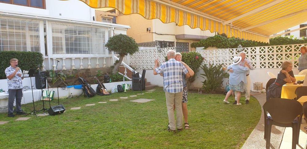 Jo kolmannen kerran kokoonnuimme Scandinaviska klubbenin pihalle viettämään iltapäivää kerhon jäsenten kanssa, ohjelmassa musiikkia, kuoron esitys ja yhteislaulua sekä maittavaa paellaa.
