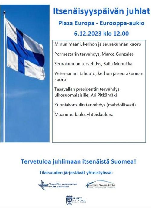 Itsenäisyyspäivän tilaisuus: Puerto de la Cruzin kaupungin, Teneriffan seurakunnan ja Suomi-kerhon tilaisuus virtuaalisena: https://fb.watch/9KPi4bOD-0/