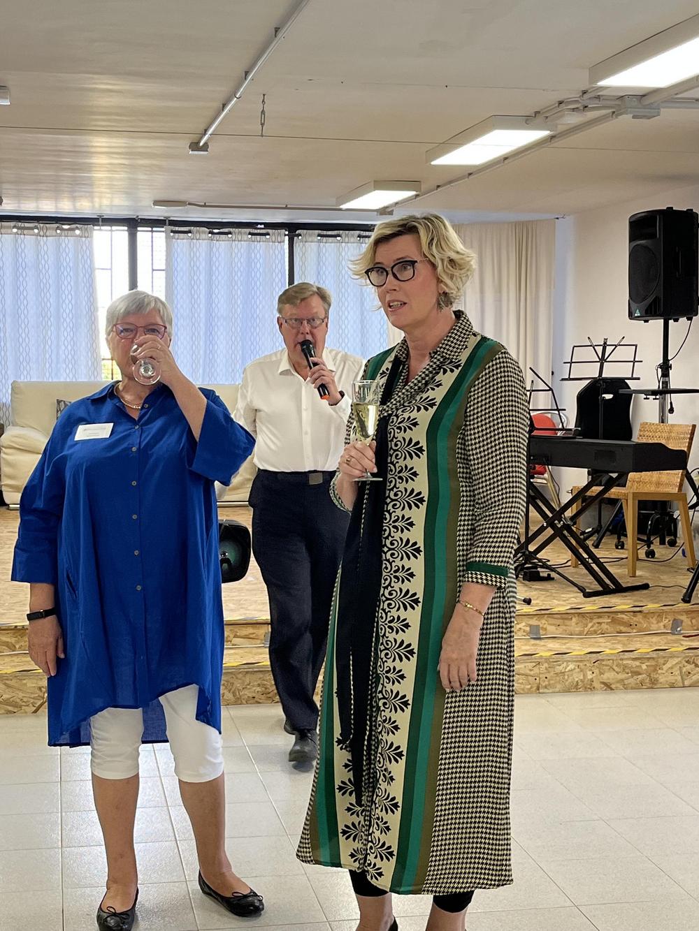 Eurooppa-aukion tilaisuus jouduttiin sateen uhatessa siirtämään sisätiloihin, kaupungin pormestarin päätöksellä. Emme yhtenä järjestäjistä voineet asiaan vaikuttaa. Valtuustosali oli tähän tarkoitukseen liian pieni, mutta vaihtoehtoja ei ollut. Pettymys se oli niille, jotka sisälle eivät mahtuneet. Salissa olijat saivat kuitenkin nauttia tunnelmallisesta juhlasta, pormestari ja kunniakonsuli tervehtivät puheesaan juhlivaa Suomea ja suomalaisia.
