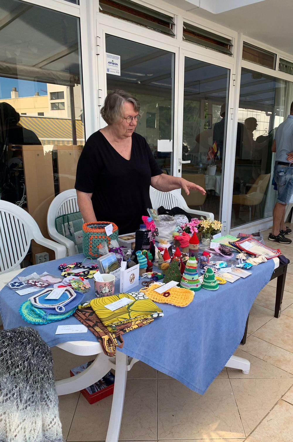 Käsityökerho osallistui Scandinaviska klubbenin kirpputorimyyjäisiin omilla käsitöillään ja näyttävä pöytä heillä olikin.